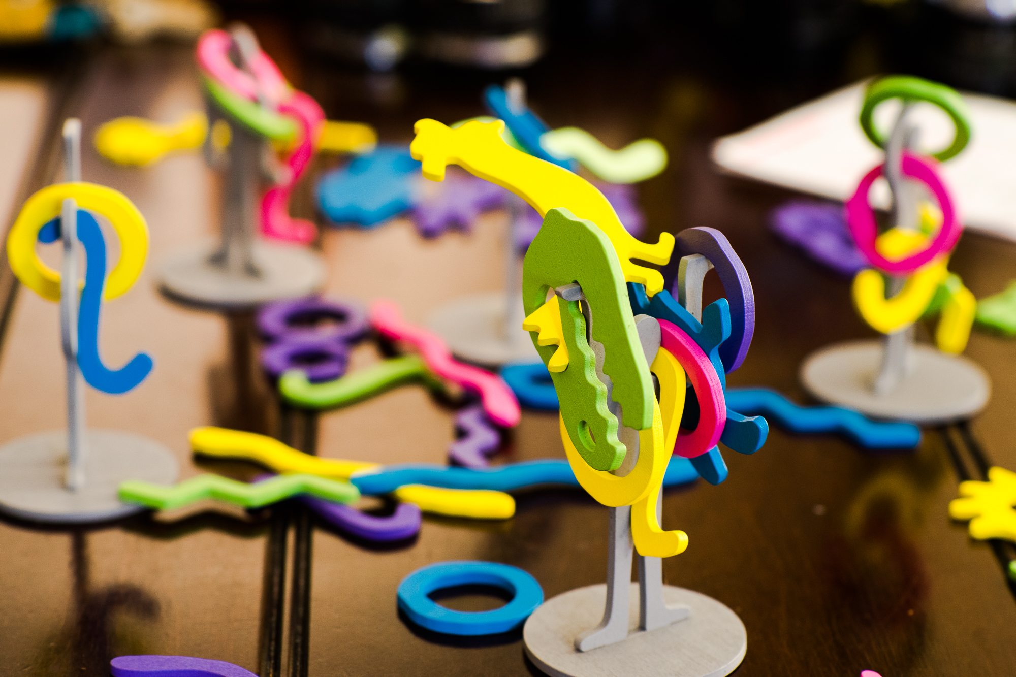 Tribe is a small-box dexterity game in which you place wooden shapes on standing figures, earning points for forming groups among the other figures on the table. You’ll be interacting with the same figures as everyone else, which is a trait of so many great dexterity games. This one’s from the designer of my favorite dexterity game, Tokyo Highway, and if you find a copy, I think you’d have a great time with it.