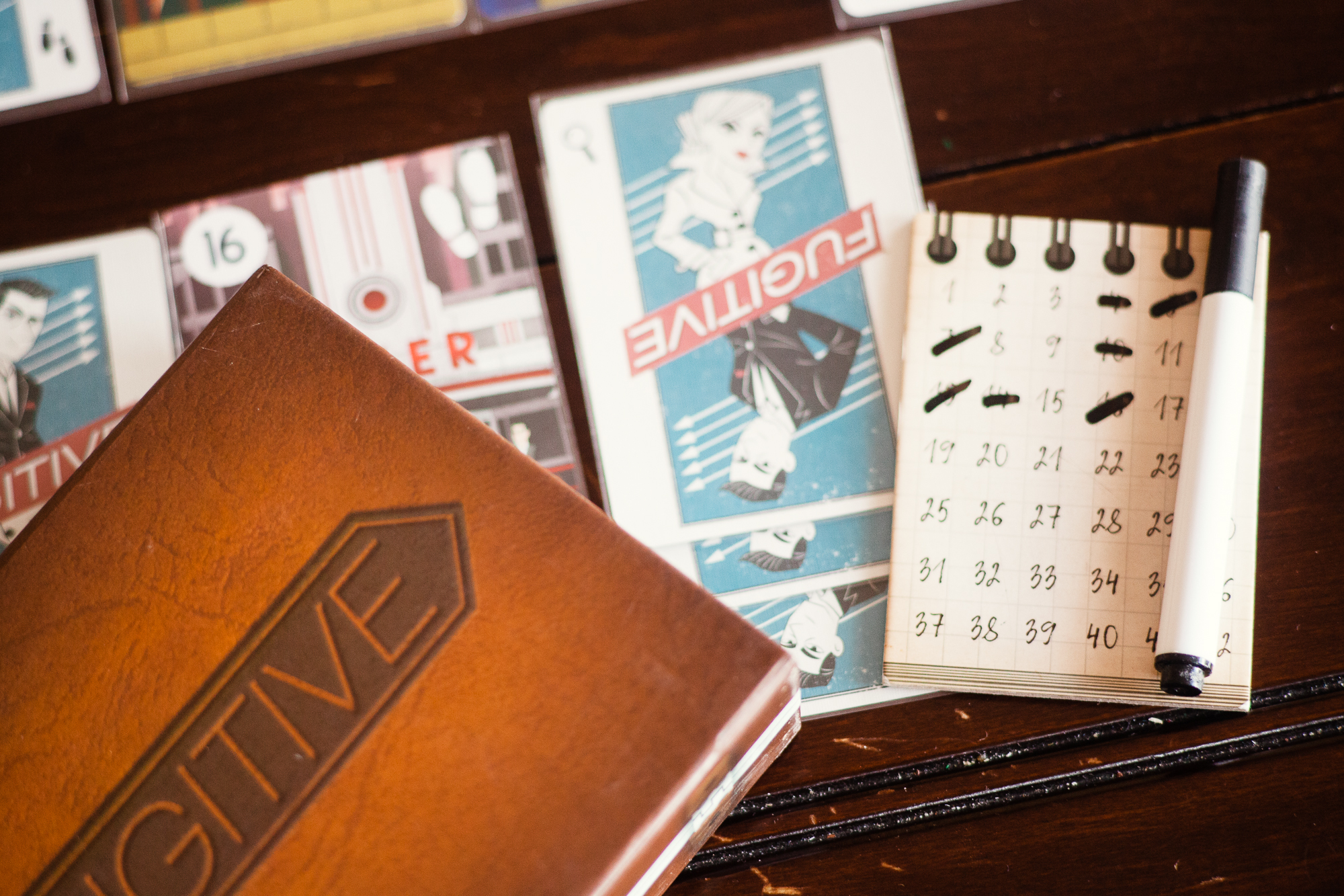 Fugitive is one of my very favorite two-player games. In this two-player game, one player is a fugitive from justice, and the other player is an agent attempting to apprehend that fugitive. The fugitive plays cards secretly, representing places they have moved — but they’re only allowed to move a certain distance away. The agent makes guesses at where they’ve been, deducing their possible locations, and making further guesses. It’s a great cat-and-mouse game.