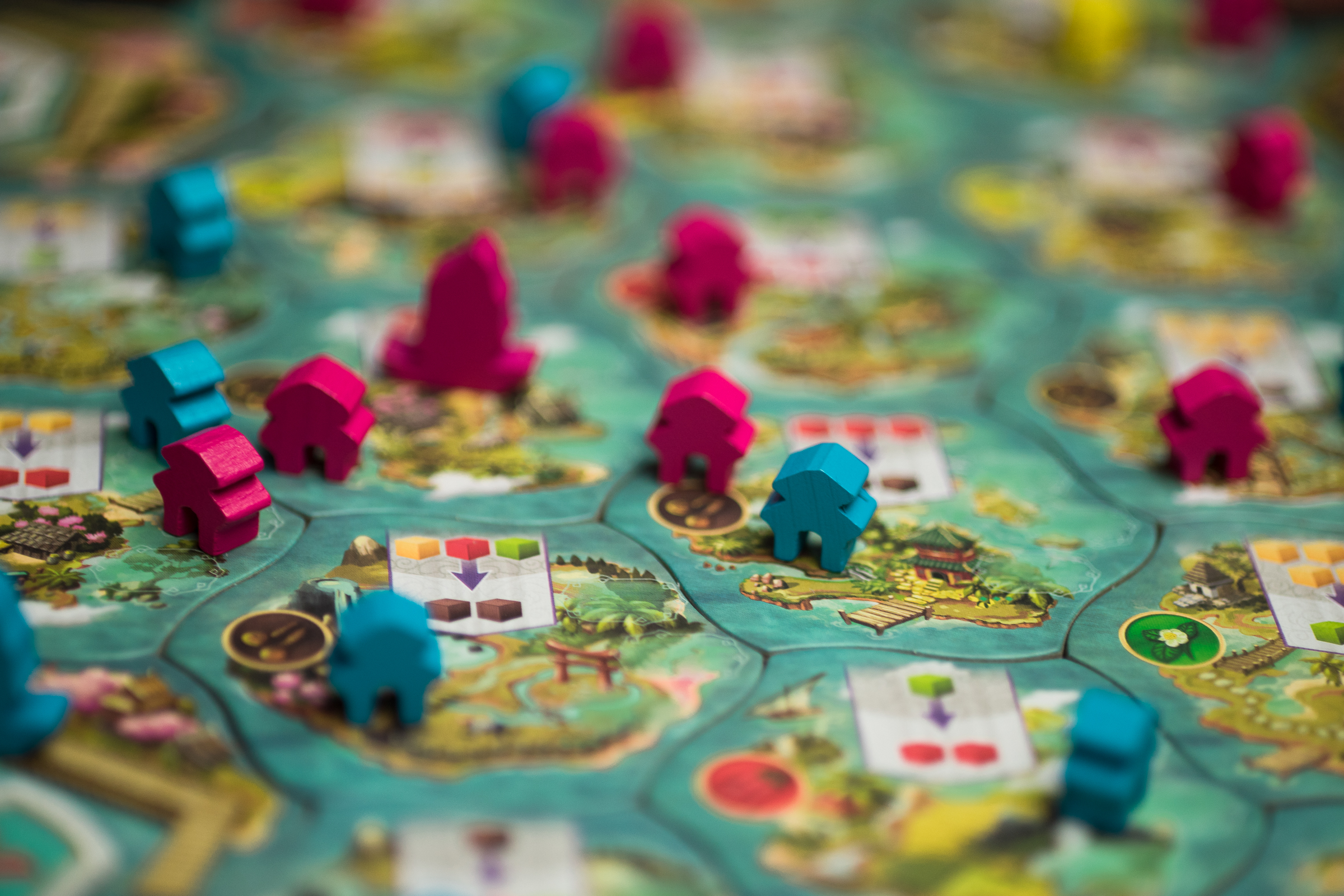 Finally, Let’s Make a Bus Route is a Japanese roll-and-write in which everyone’s making bus routes on a combined board. You’ll earn points for passengers and the areas they visit. It’s not overly tense, but there’s plenty of clever play to be had. It’s been rebranded as Get on Board, which is pretty widely available in the U.S., so you can pretty easily give this one a spin.