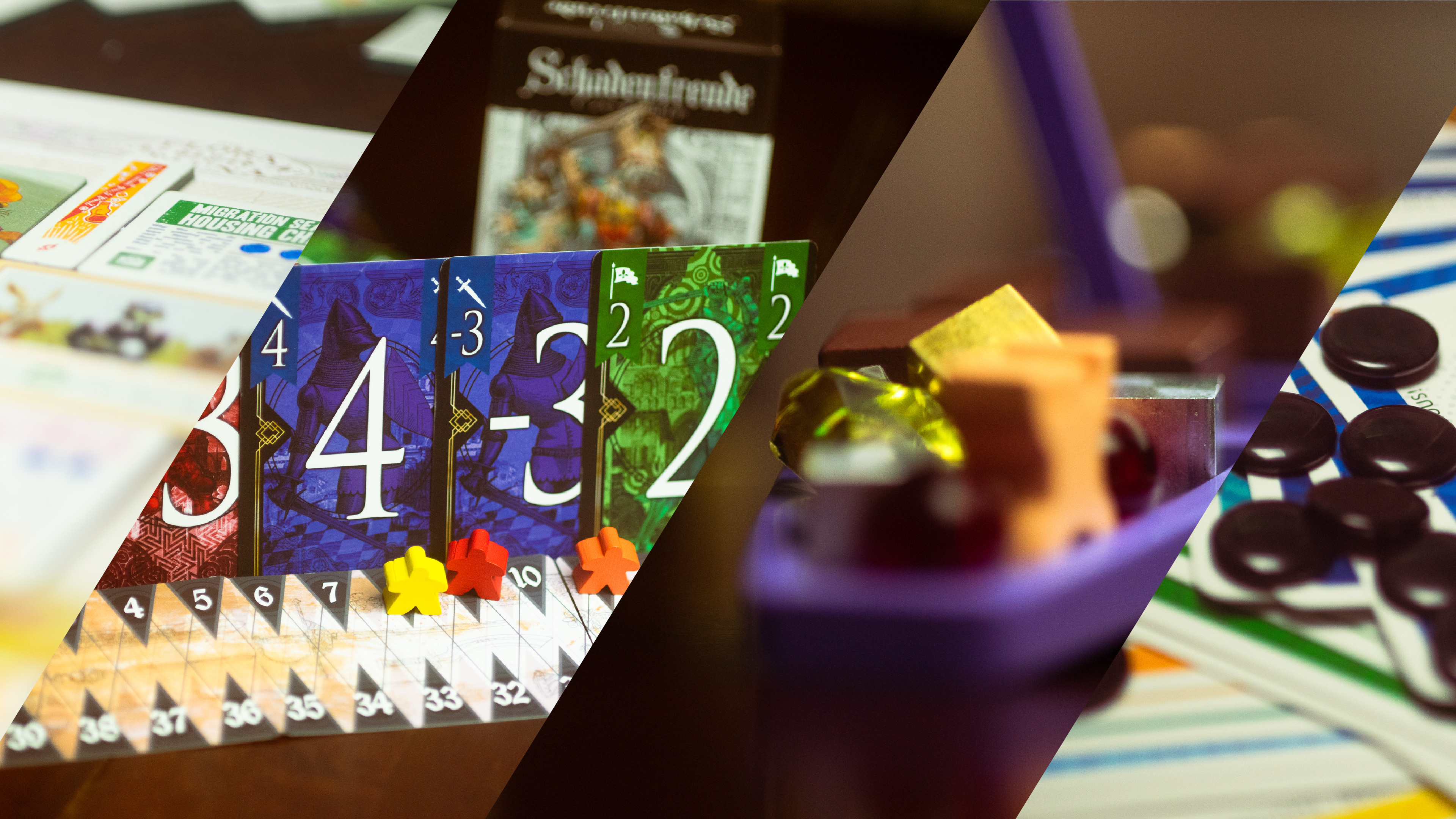 - Schadenfreude (see the link above), a must-follow trick-taking about not coming in first (sort of) and delighting in the pain of others. The winner of this one is the player who comes closest to 40 points without going over, and the end triggers when somebody goes over. Designed by ctr.