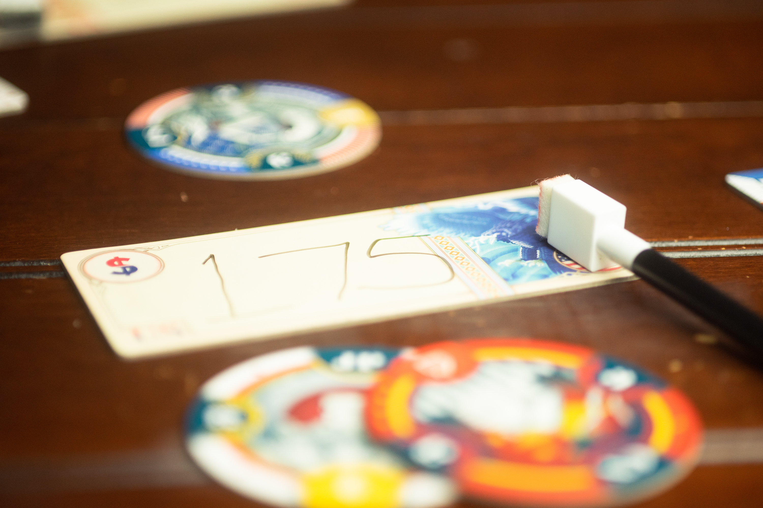 When I think about great auction games, I think about games where you have to manage your resources closely so you don’t run out of money with which to bid. QE (Birnbaum, 2019) takes the usual auction game idea and turns it on its head: You have unlimited money. And by unlimited, it’s truly unlimited. If you want to win a bid, you can bid with a number as high as you’d like. A trillion dollars? Sure! A dollar? You bet. You get to decide what you spend, but there’s an important consideration: If you spend more money than anyone else in the game, you aren’t eligible to win.