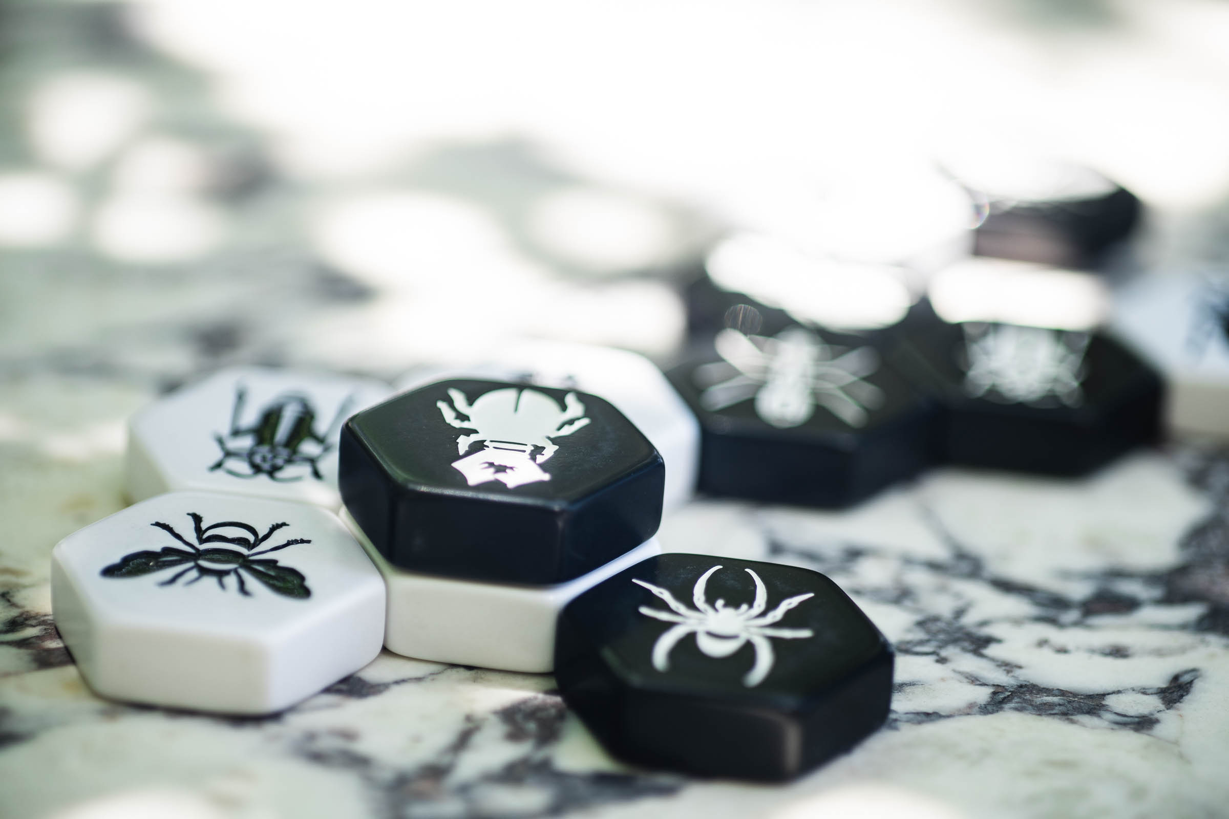 Hive (2001) is a great two-player abstract game in which each player is trying to surround their opponent’s queen bee with pieces. It’s such a cool tactical game, and while I’m not particularly good at it, I’ve really enjoyed playing it with friends. (Do I want to play against the best players in the world? No, I probably do not.) I do feel like losing repeatedly has made me better at the game, and there’s a real beauty in that. Designed and illustrated by John Yianni, published by Gen42 Games.