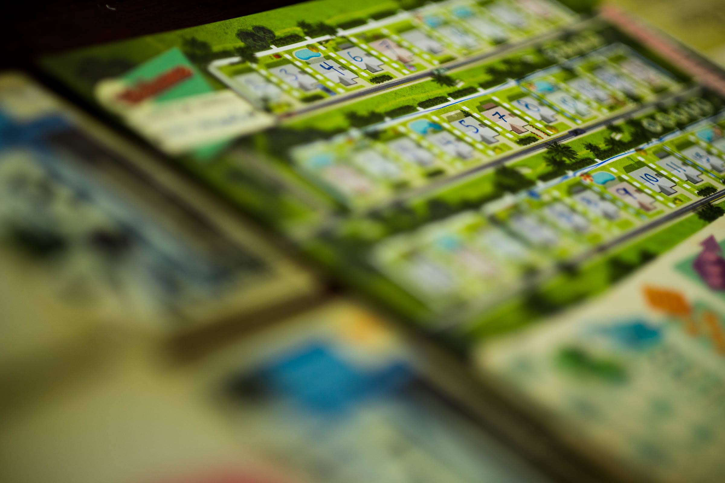 Turns are, thankfully, simultaneous, so if you do decide to gather 100 of your friends (remotely, please!), you won't be waiting for several hours between turns. A player (or a well-trained dog, maybe) will flip over cards from three stacks, giving you three different options of effect-and-number pairings to use. If you're anything like me, you'll then build your extremely imperfect neighborhood, writing house numbers (and being sure not to duplicate them on a street, and being doubly sure that they're in the right order), drawing fences, building parks, and so much more.