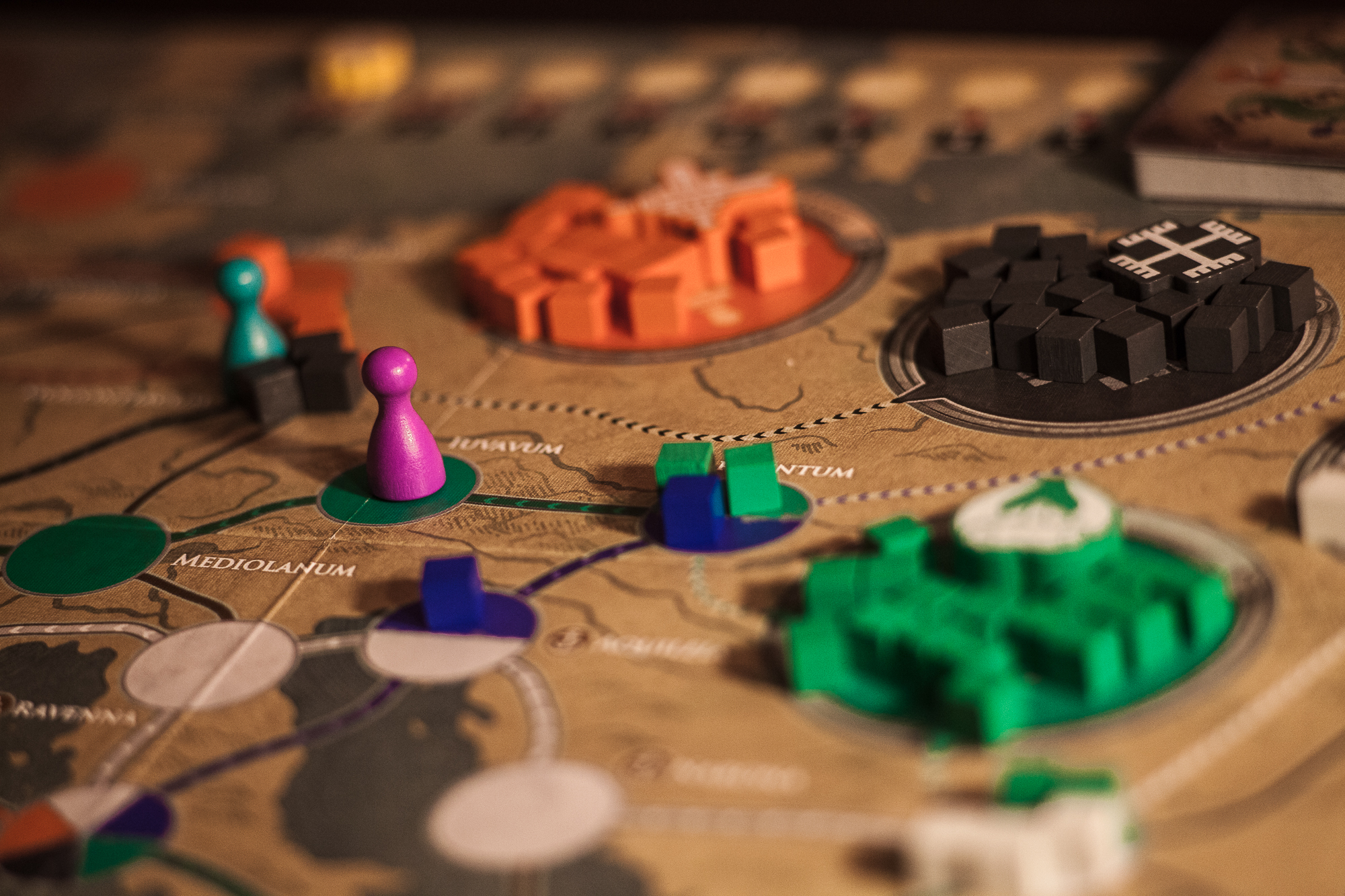 Continuing the theme from Rising Tide, Pandemic Fall of Rome is another non-virus take on the series: In this one, you’re facing groups invading historic Rome, and the map is actually a bit more linear than in other Pandemic games. Each turn, cubes will move forward on multiple paths toward Rome, which you’ll try to halt before they sack your capital. It’s the newest of the three in the series, and it’s probably the one I’ve played the least.